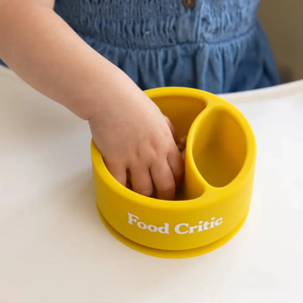 Our Silicone divided bowl suctions to the table, has a curved lip to encourage self-feeding, and grows with your child from infant purees to late-night ice cream sundaes.