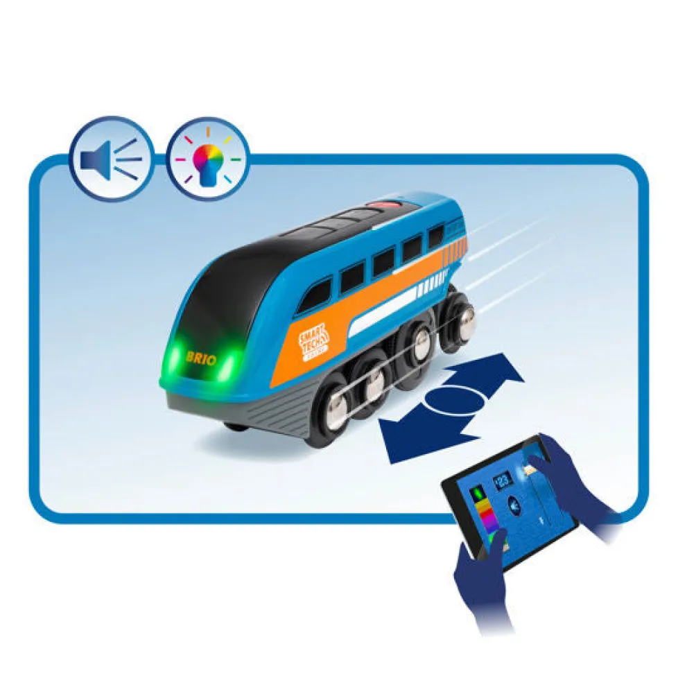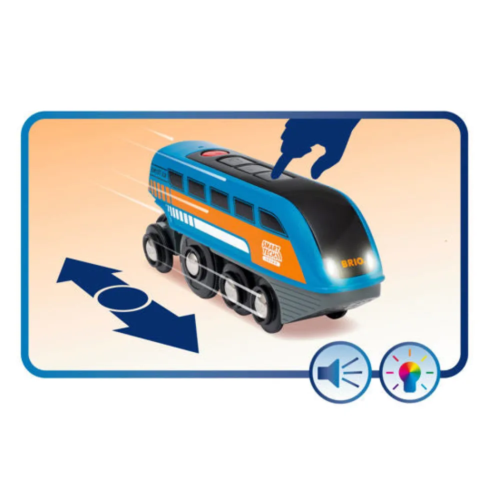 Take control of the play with this interactive toy train. The 33971 Record & Play Engine is a battery-powered train that’s packed full of playful technology and powerful enough to handle the heaviest loads. Use the red button on top of the engine to record your own sounds and then hear them play as it passes through the Sound Action Tunnel. The added Smart Tech Sound technology allows the engine to communicate with its surroundings, automatically responding to Smart Tech accessories with various train actions like multicolour lights, motion and sounds that enhance the imaginative play.