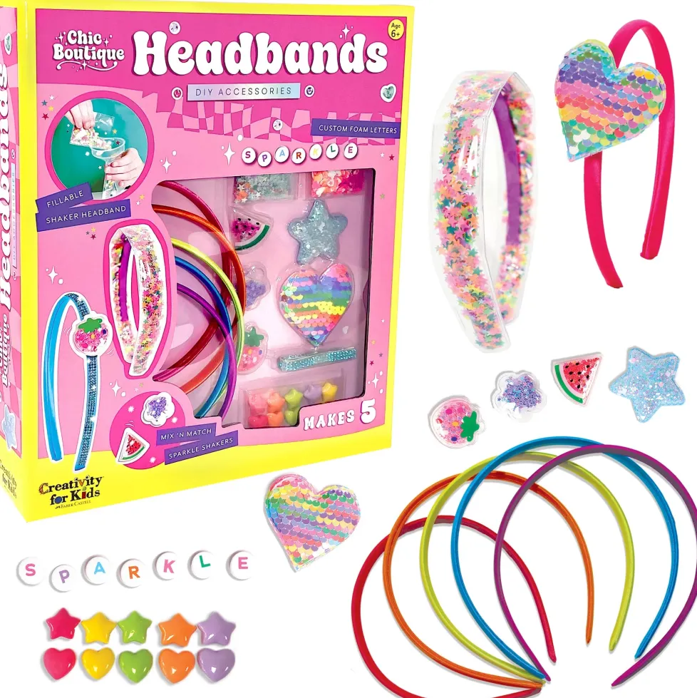 Customize your headbands with fun charms, confetti, sparkle shakers, and sequin stickers