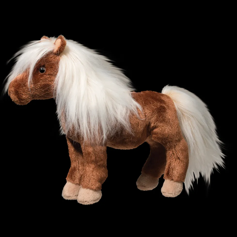 9″ tall Tiny the stuffed Shetland Pony is just too cute! Long white mane and ultra soft rich brown coloring. Standing for easy play value!