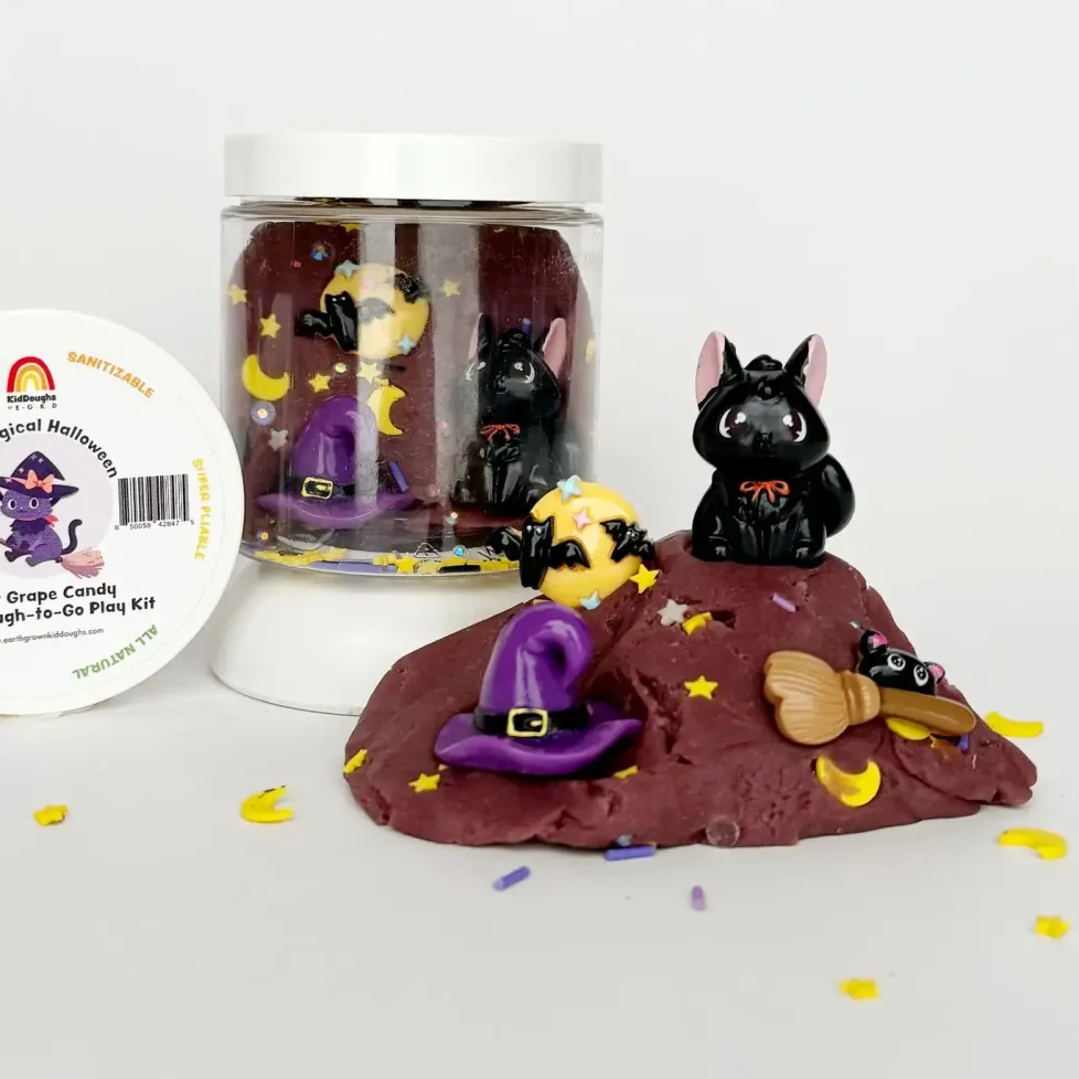 Enjoy the magic of Halloween with this paw-somely purr-fect Meow-gical Halloween Mini Dough-To-Go play kit! Fall into Halloween fun with EGKD!