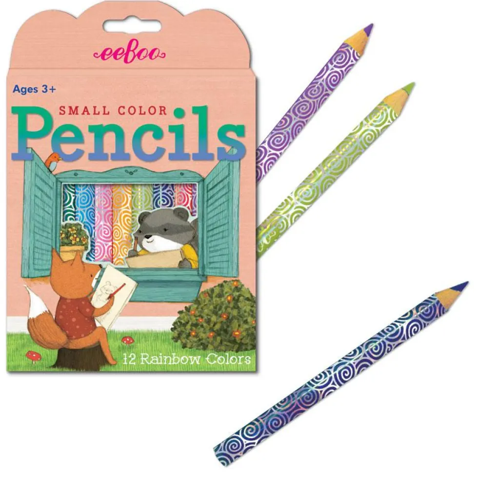 12 small colored pencils styled with holographic printing on the barrel. Illustrated by Stephanie Graegin. Choose between Polka Dots, Swirls, Diamonds, or Stars.