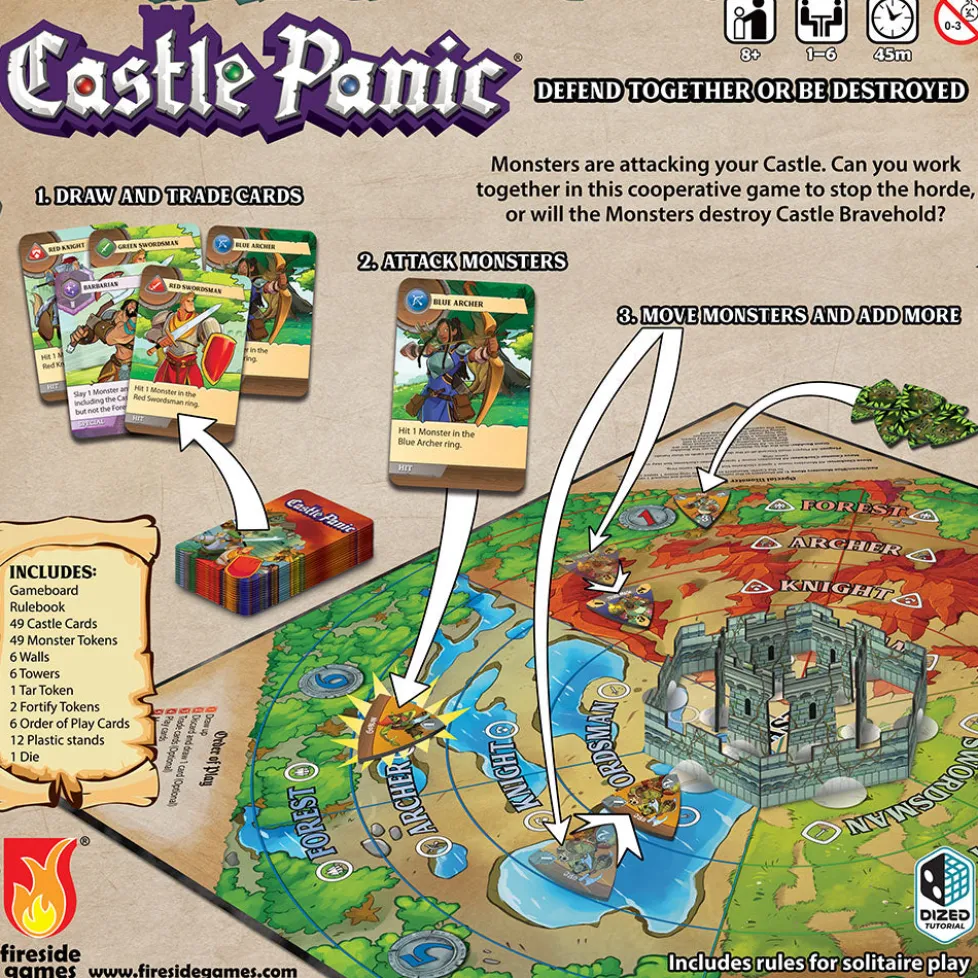 Monsters are attacking your Castle. Can you work together in this cooperative game to stop the horde, or will the Monsters destroy Castle Bravehold?Castle Panicis a cooperative tower defense board game for 1 to 6 players