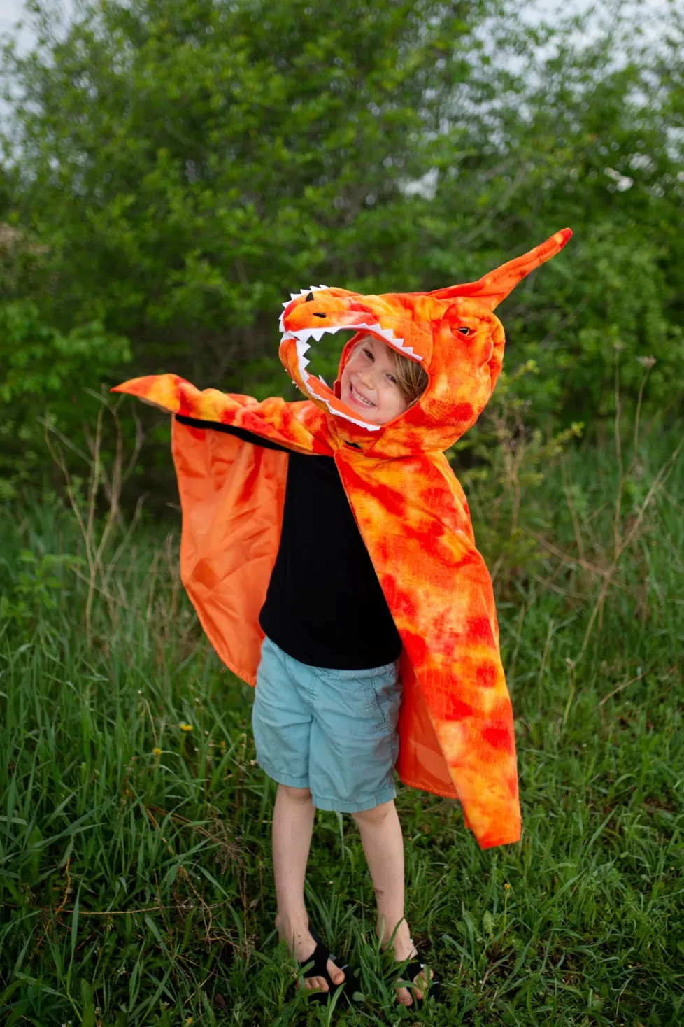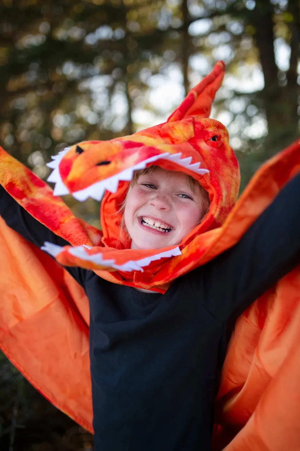 Soar back in time with our Grandasaurus Pterodactyl Cape. This vibrant orange cape features a stuffed headpiece with a long beak, 3D spine, and removable lower jaw to ensure a secure fit.