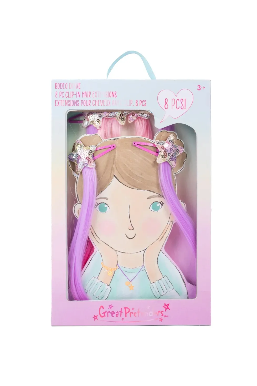 Each extension is finished with a sparkly sequin star hair clip at the top, adding extra shine and glamour. Whether you’re getting ready for a special occasion or just want to spice up your everyday look, these clip-in extensions are an easy way to bring some Rodeo Drive-inspired style to your hair!
