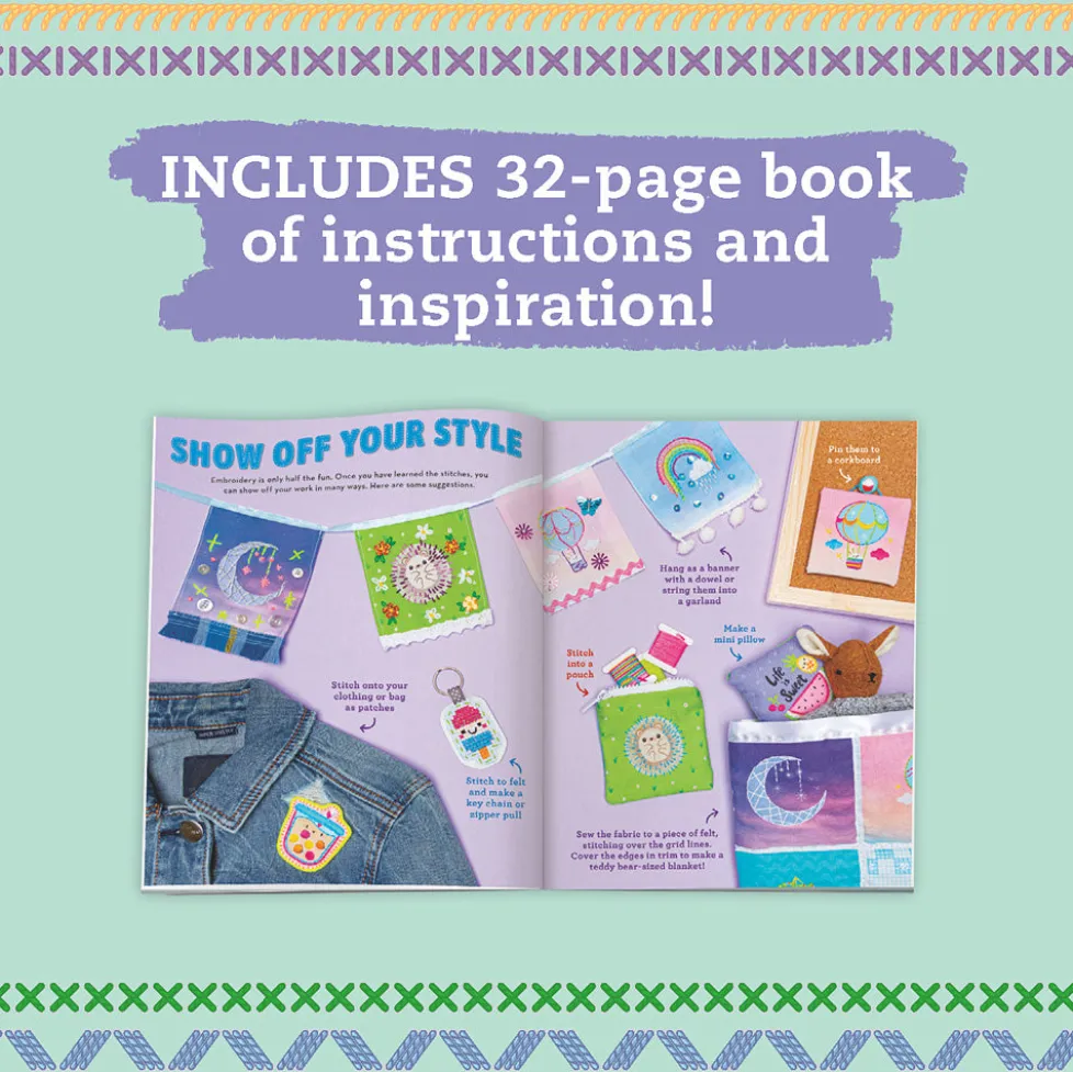 Learn how to embroidery stitch with Super Cute Embroidery by Klutz! In this adorable kit, kids can learn embroidery stitching the cute way with a new stitch on each adorable project! This kit will teach kids how to satin-stitch a bee and cross-stitch a popsicle! There are 8 different designs printed in 4-color, in cotton fabric. The kit comes with an embroidery hoop sized perfectly for the art work. Included in the kit: Embroidery hoop Custom designed fabric with 8 projects 7 colors of embroidery thread Felt embellishments 2 needles What is Klutz? Klutz is a premium brand of book-based activity kits, designed to inspire creativity in every child. Our unique combination of crystal-clear instructions, custom tools and materials and hearty helpings of humor is 100% guaranteed to kick-start creativity. Super-clear instructions Open-ended Creativity Rewarding Reading Skills to Build On Everything You Need.