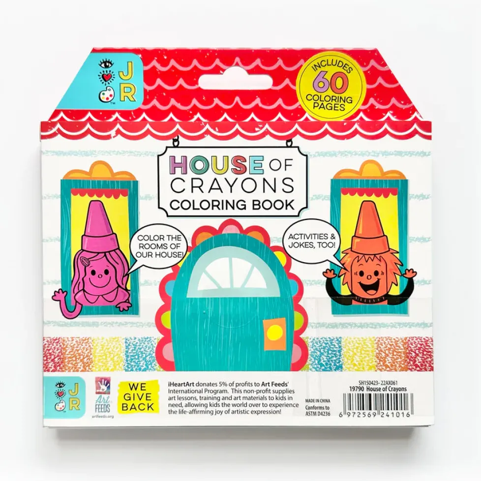 • 8 crayon “people” in a house-shaped package, with a 60-page coloring book attached to the back!