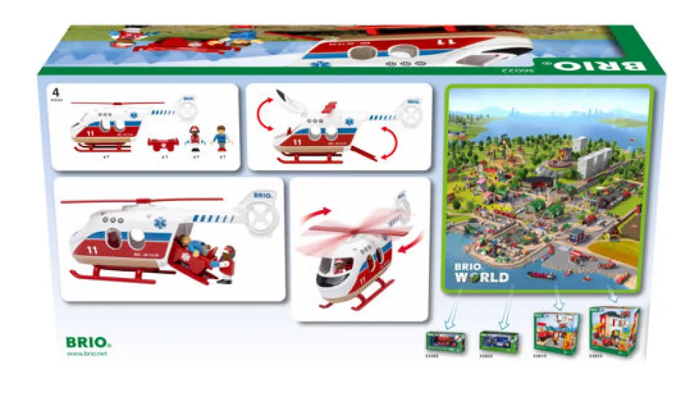 About BRIO World: BRIO World is our open-ended play system that grows with your child. All BRIO World toys, from our train tracks to our vehicles and characters, work with each other to create an entirely customisable world that’s great for challenging growing minds. There’s endless combinations of imaginative play waiting to be explored and this playful helicopter toy is a great addition to other rescue-themed BRIO World products.