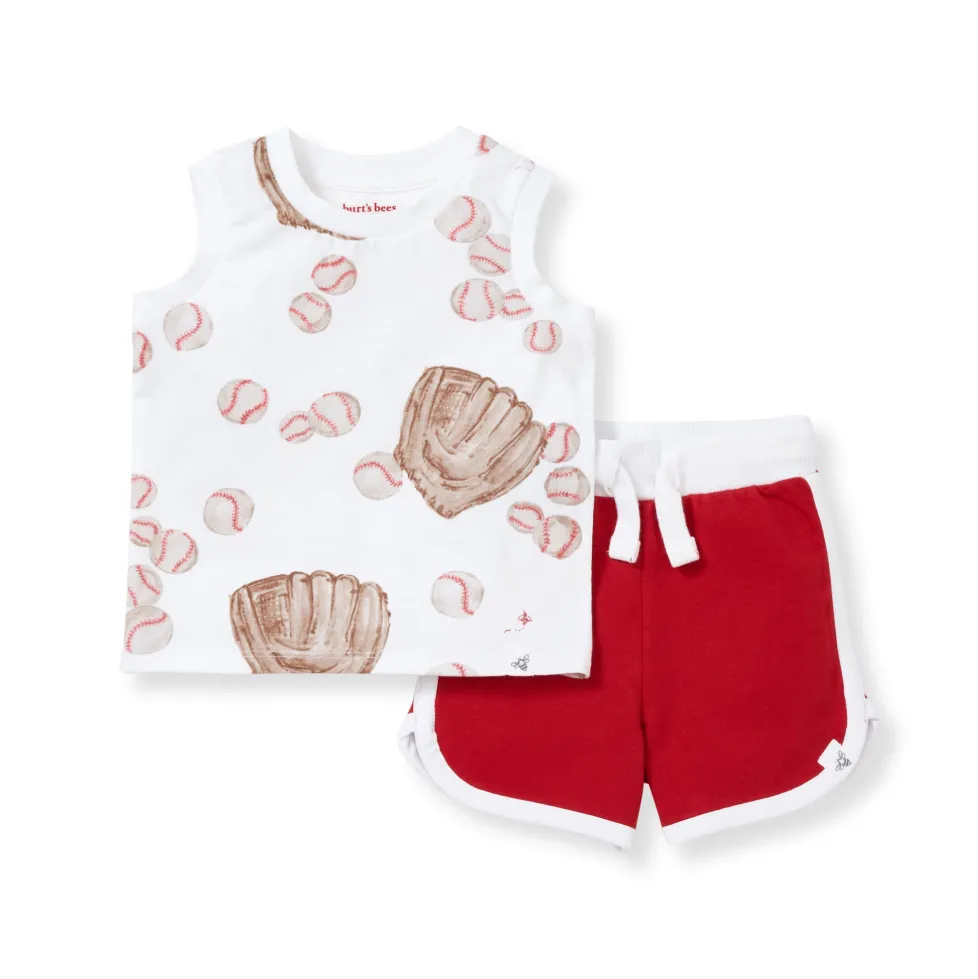 Your little bee will be ready for the baseball field in our Play Ball Tank & Short set!