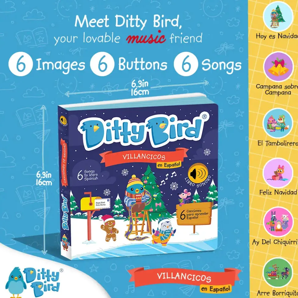 An interactive musical songbook for baby, toddler, 1-3 years old: read, listen and sing along as ditty bird sings your favorite songs.