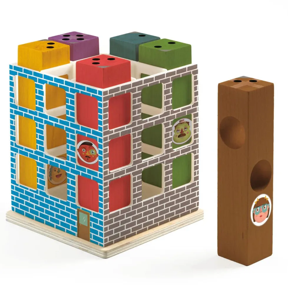 Contents: 30 cards, 1 plastic cube on a wooden base, 5 wooden sticks and 1 set of game rules in 10 languages.