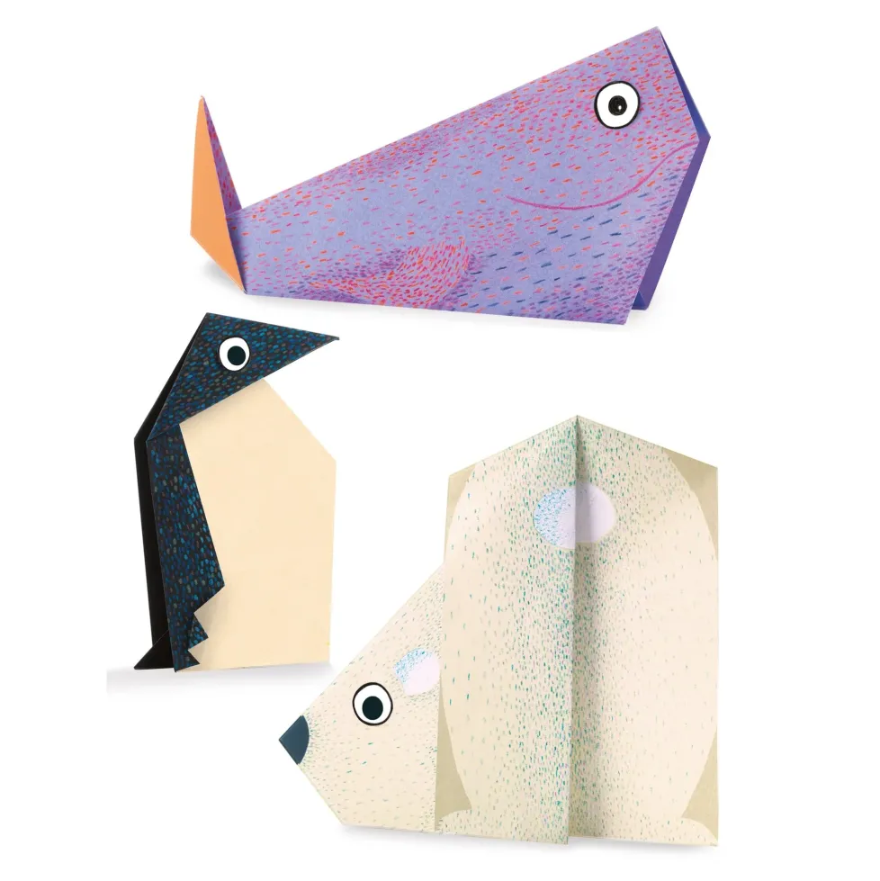 Travel to the North Pole with this origami set where whales, birds, penguins, and bears roam the land. Following the instructions in the booklet and the marked lines, children fold the sheets to make 24 paper animals!