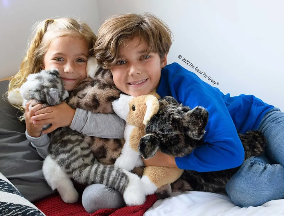 Get spotted with Saffron, our DLux Leopard plush! An armful of exotic fun, this lovable cub is ready for a day of hugs and cuddles. Her beautifully marked coat has been crafted from plush materials so soft and decadent, they must be felt to be believed. Gently weighted paws lend Saffron a floppy feel that will have her fans coming back time and again for more soothing snuggles. Large, rounded ears, and a sweet, dark eyed expression accentuate Saffron’s cub-like appearance and will melt the hearts of wild cat lovers. A sculpted, pink nose and white, tufted chin complete her look. Make every day a safari adventure when you wrap your arms around our lovable DLux Leopard stuffed animal!