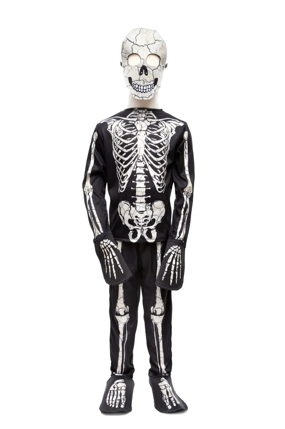 The shirt features long sleeves and a crew neck, while the pants are designed with an elastic waistband for a comfortable fit. The matching skeleton mask completes the set, adding an extra layer of spookiness to your look.
