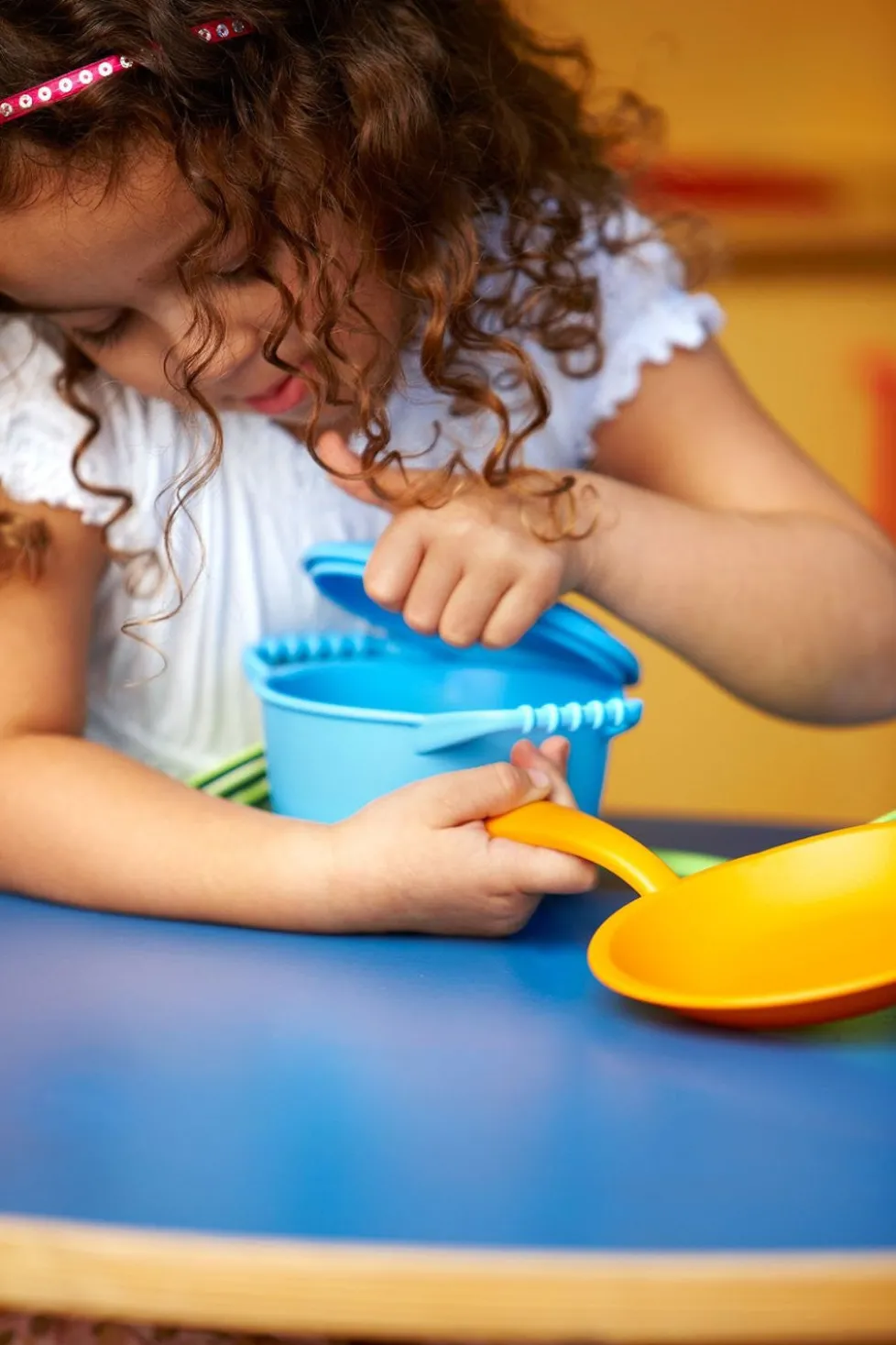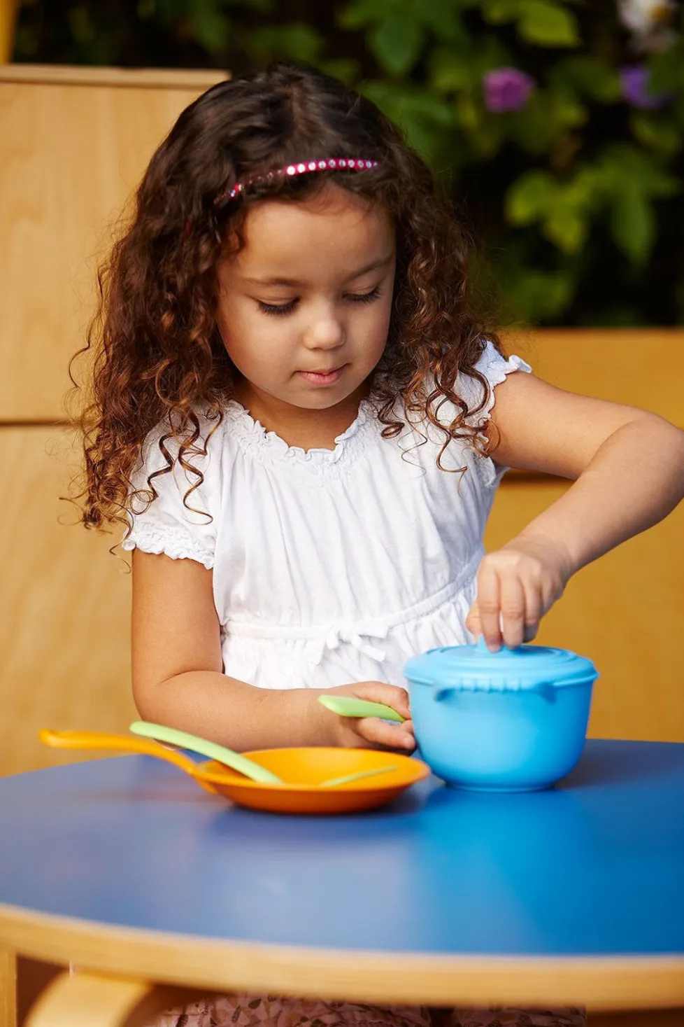 Reducing fossil fuel use and CO2 emissions is part of the recipe for aspiring gourmets who use the Green Toys™ Chef Set. This classic collection of kitchen essentials is made in the U.S.A. from 100% recycled plastic milk containers. Guaranteed to produce hours of Good Green Fun™! For ages 2 and up.