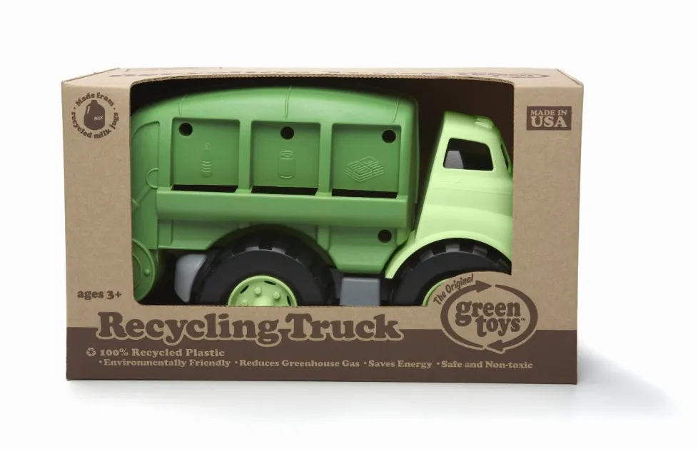 Sort bottles, cans, and paper or just have a blast! Your eco-conscious little one will learn recycling basics while playing with this super cool recycling truck that has a movable recycling bed and open/shut rear door. The awesome eco-design has no metal axles. For ages 1 and up.