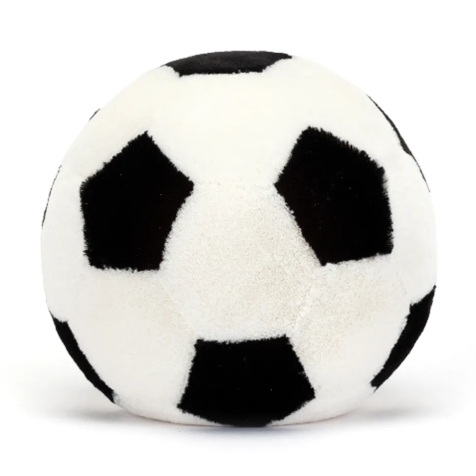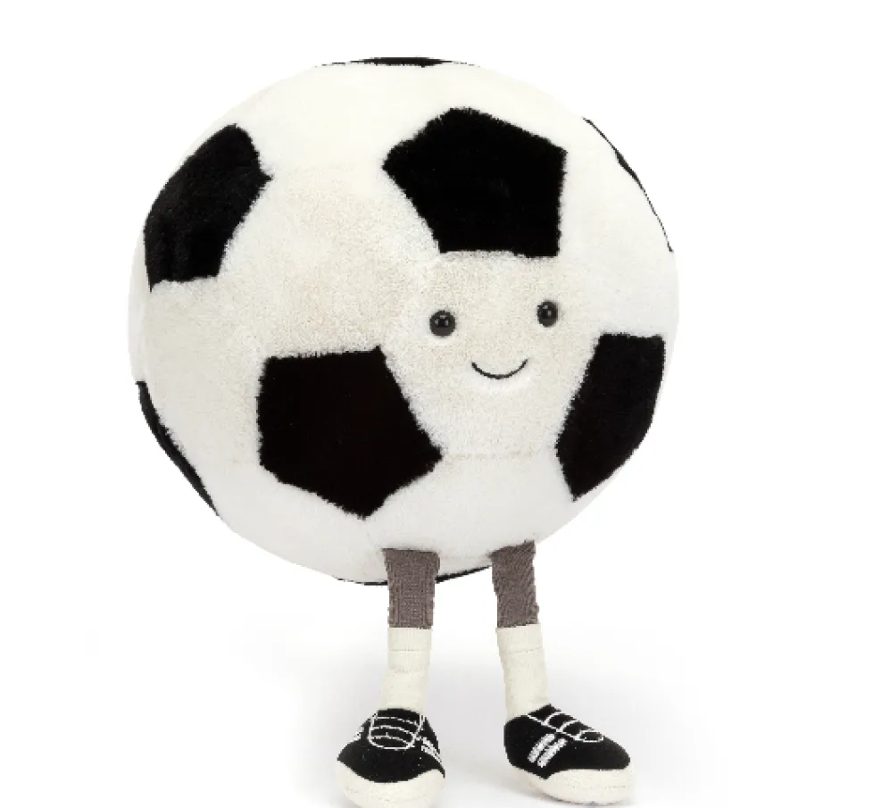 It’s cuddles at kick off with Amuseable Sports Soccer! Squishy and soft in black and white fur, this smileysoccer is ready to kick those long legs and score the winning goal in those fabric boots with stud detailing.