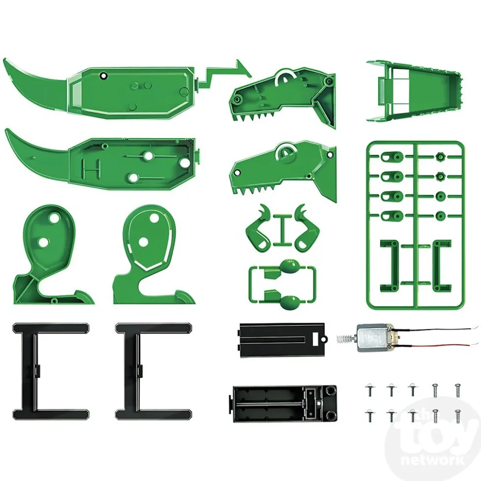 Build this KidzRobotix – Tyrannosaurus Rex Robot that walks, blinks, and opens its jaw. Great beginner robotics kit. Requires 2 AAA batteries. Each piece is in a color box. 6.5 x 9.4 x 2.4 inches.