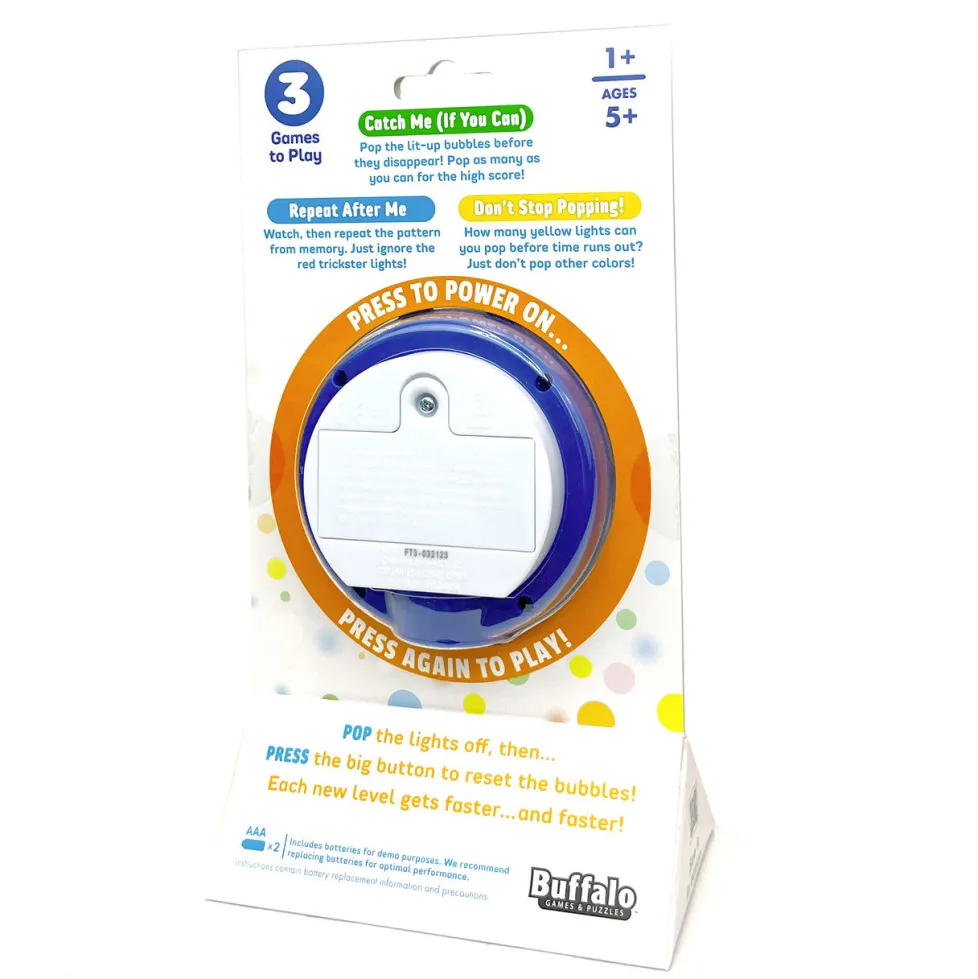 FUN FAST POPPING ACTION – Pop all the lit bubbles as soon as they appear, and then press the big button on the back to reset the bubbles before time runs out! Keep popping the bubbles fast to level up in each game mode!