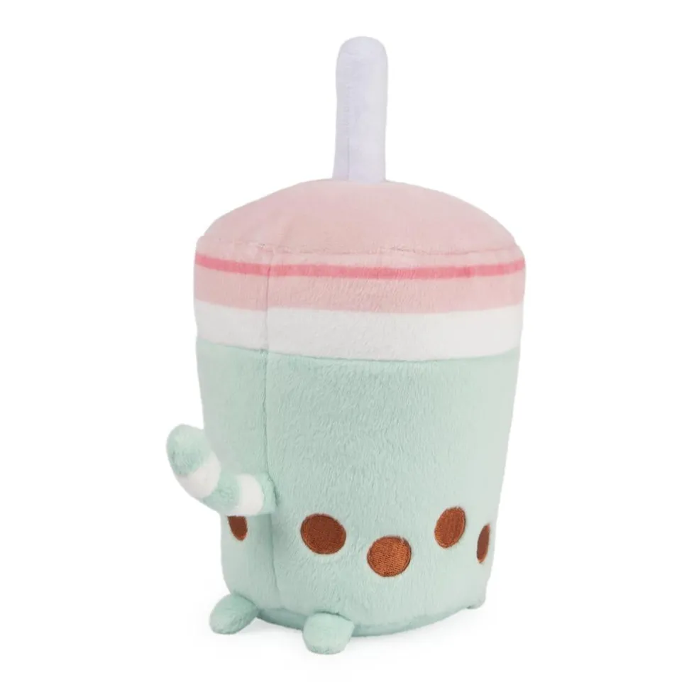 Pusheen has arrived as a refreshingly delicious boba tea! This eye-catching mint-green Pusheen boba cup plush stands six inches tall, complete with a straw, pink lid, and amber-colored embroidered tapioca pearls.