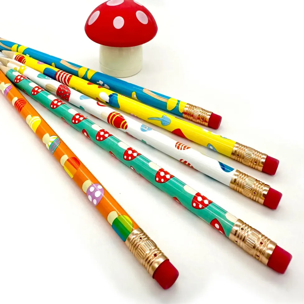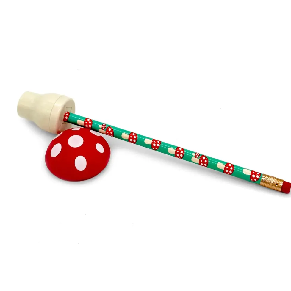 The perfect set! This cute tube has everything you need: 15 beautifully decorated pencils and a mushroom sharpener with an eraser cap.