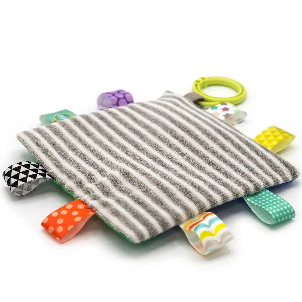 Taggies has gone grey with this gender neutral theme. Two popular woodland critters feature colorful Taggies ribbons and adorable expressions.