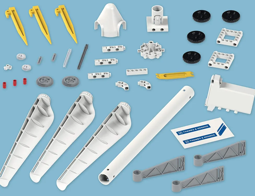 Wind is one of the most promising sources of clean, renewable energy available today. With this kit, you can assemble a realistic wind turbine complete with electric generator and adjustable rotor blades that are designed with complex aerodynamic curves to look and work like modern-day wind turbine blades. Then, conduct experiments to optimize the turbine’s performance by adjusting the angle of the blades and discover how to use the wind turbine to light up an LED and charge a rechargeable battery. Convert the generator into an electric motor and assemble a small electric car to demonstrate a tangible application for the stored electricity.