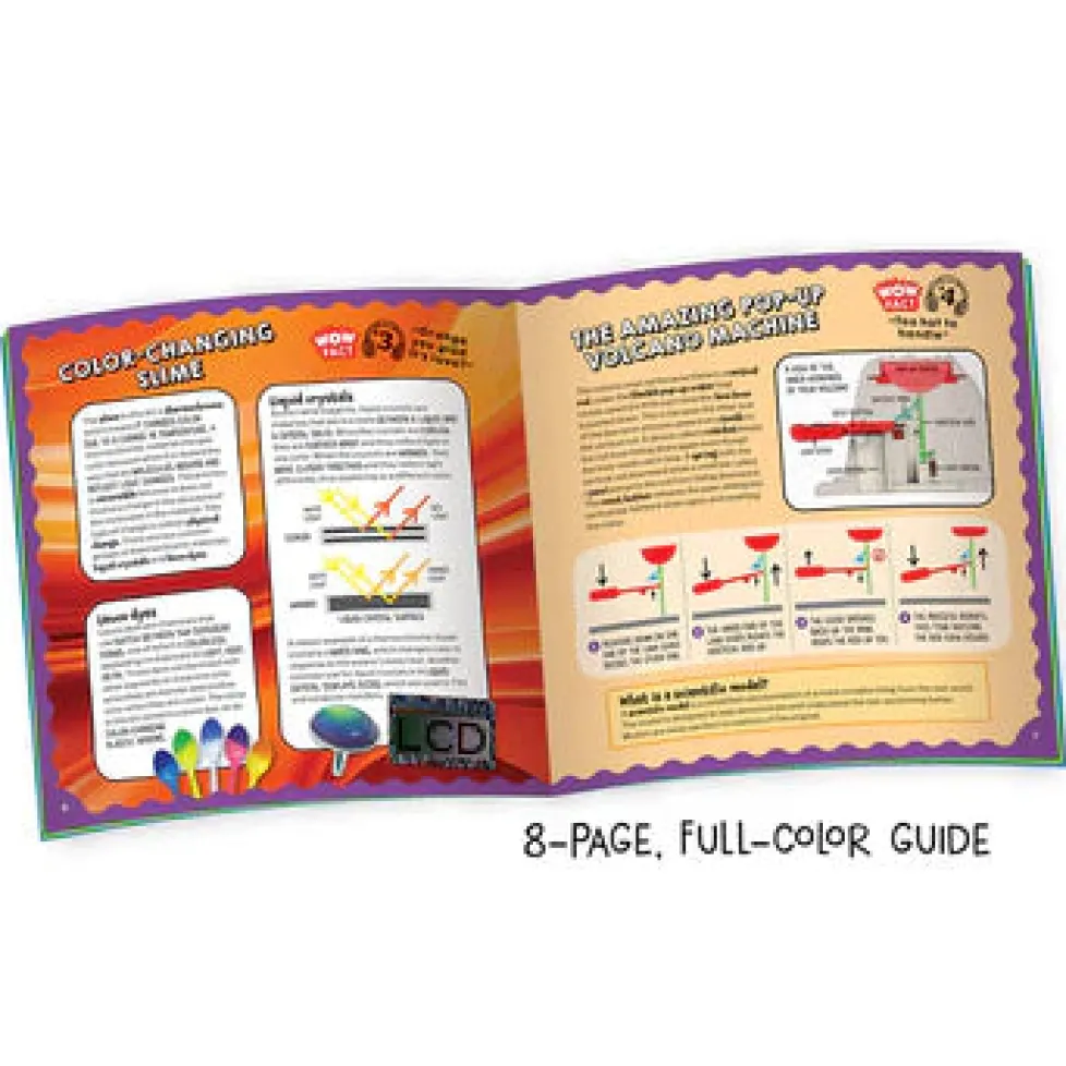 A fun, 8-page, full-color experiment manual guides you through using your volcano and provides fun, educational content about volcanoes. Scan the QR code to access exclusive audio content from Wow in the World’s Guy Raz and Mindy Thomas as they explain the science behind each eruption, reveal fun facts about volcanoes, and even share volcano sounds!